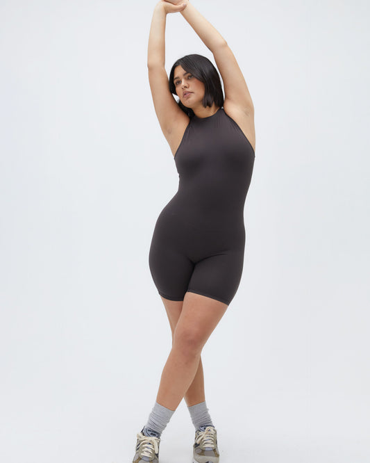 Our classic Romper in a sleeveless style; perfect for Summer. Designed to be form-fitting, whilst sculpting your silhouette. Made from 70% Polyamide and 30% Elastane.