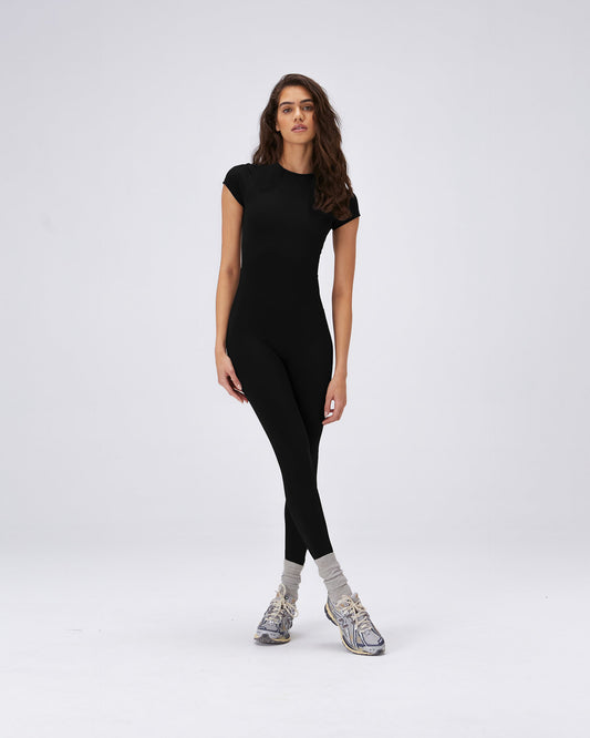The Ultimate Unitard is a piece you can ‘throw on and go’. Designed with a high neckline, short sleeves, and a subtle zip back detail. A versatile addition to your wardrobe. Style yours with blazer and heels for a dressed up look.