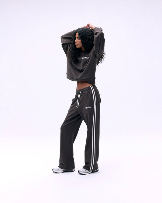 Varsity Loose Fit Sweatpants - Coffee Bean/Marshmallow White