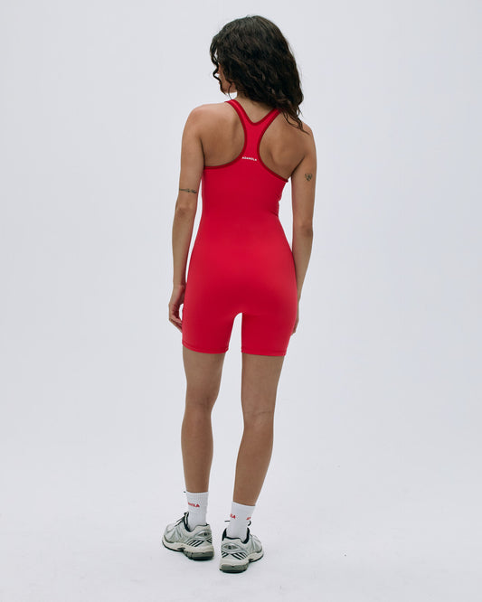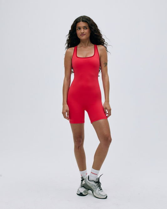 Ultimate Racer Back Piping Romper - Apple Red