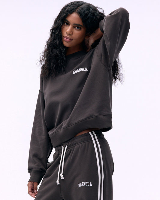 Varsity Loose Fit Sweatshirt - Coffee Bean/Marshmallow White