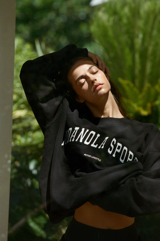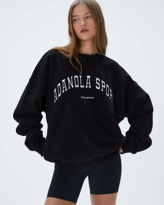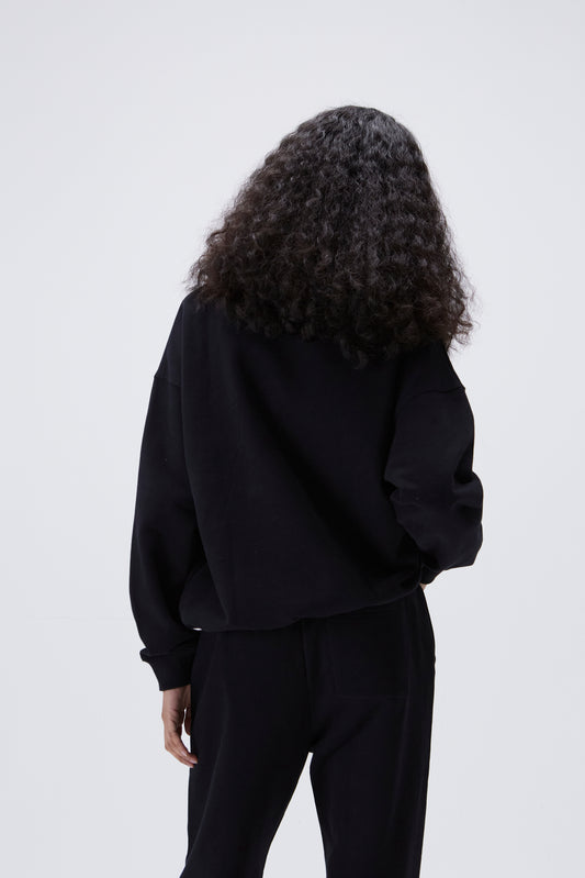 Our Oversized Sweatshirt, featuring an oversized silhouette is easy to dress up or down. Clean-cut from our new 100% Organic Cotton Fleece-back fabric and features an Applique Patch Varsity Logo. To get the laid-back athleisure look, style with the matching sweatpants, perfect for lounging or coffee dates.