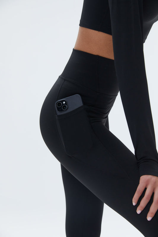 Meet the new Ultimate Pocket Leggings. Our classic best selling Ultimate Leggings with a pocket on the right side, perfect for carrying the essentials. Made from a light, four-way stretch fabric. Without a front seam, as well as a higher waistline for extra support and to contour the body. Perfect for doing everything, every day.