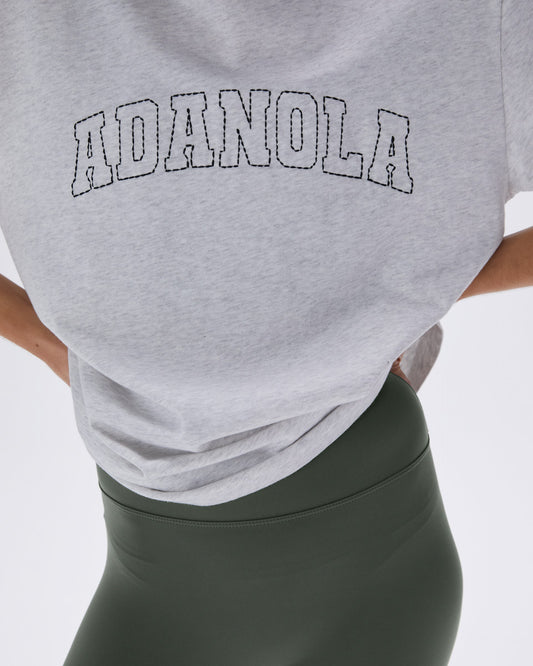 Varsity Stitch Short Sleeve Oversized T-shirt - Light Grey Melange/Black