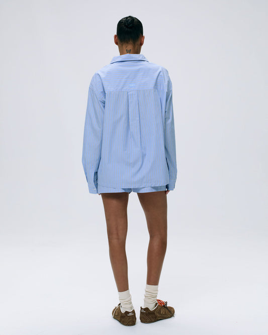 Introducing the Cotton Stripe Oversized Shirt. Made from a naturally airy, breathable Cotton fabric; the perfect lounge look for your rest days. Wear yours with the matching shorts or Cotton Pull on Pants.