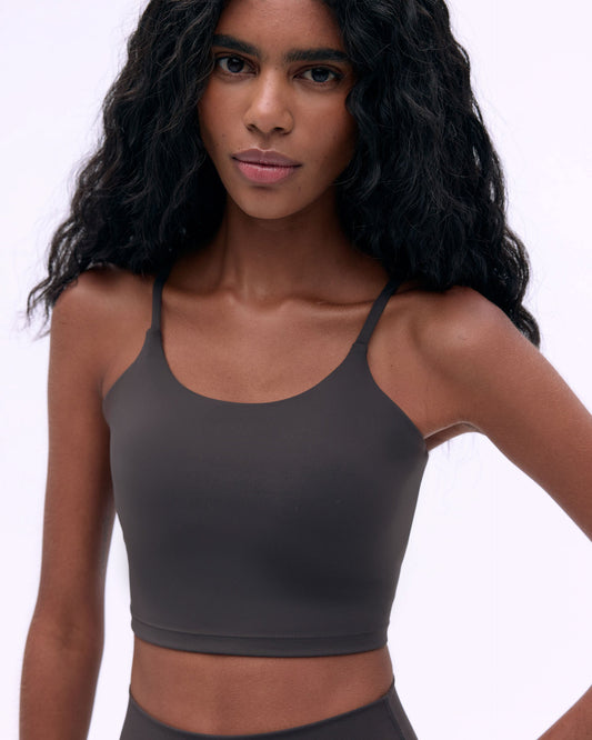 Lightweight and comfortable, the Tank Bra offers the perfect mix of comfort and style. With a long body, skinny straps and high neckline, this bra is perfect for medium support workouts. This bra comes with removable padding.